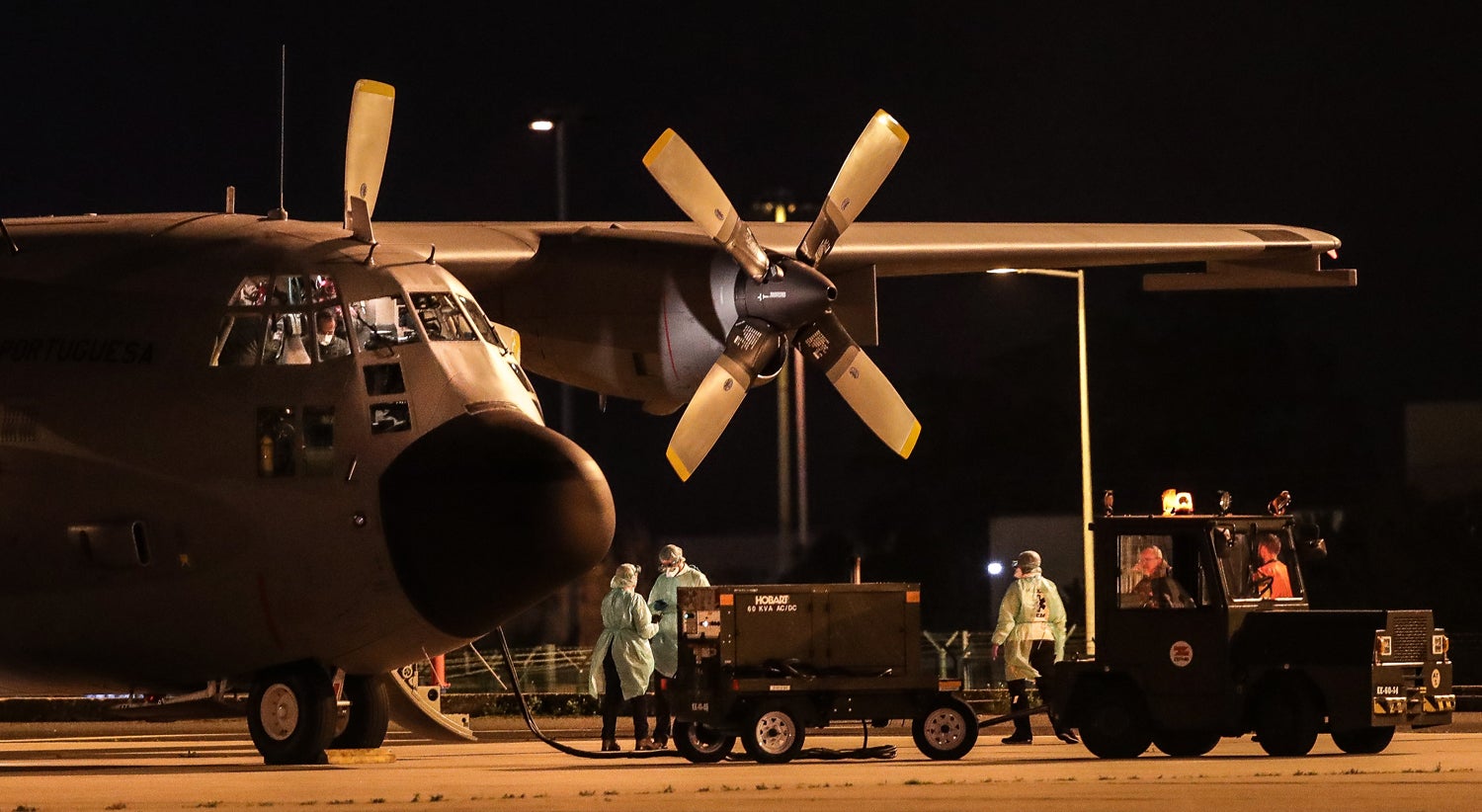 A viagem do grupo durou quase 20 horas. Saíram de Wuhan na China, a bordo de um A380 da Hifly, até uma base militar perto de Marselha, França, onde foram realizadas avaliações médicas. Após várias horas, embarcaram num avião C130 da Força Aérea Portuguesa que os transportou até ao aeroporto de Figo Maduro, em Lisboa, onde aterrou às 20h30 de domingo. À chegada foram avaliados pelos médicos da Equipa de Sanidade Internacional, coordenada pela Direção-Geral da Saúde.