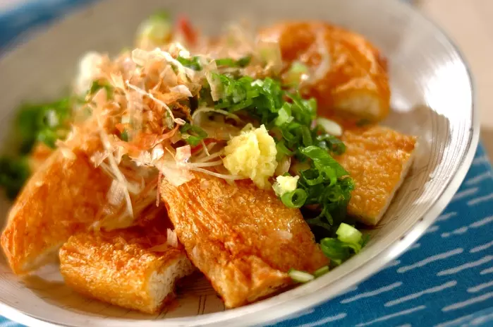 薄く切った豆腐を揚げた油揚げ。煮物などで使う際は熱湯を回しかけ油抜きをしましょう。油抜きをすることで煮汁が吸い込みやすくなります。